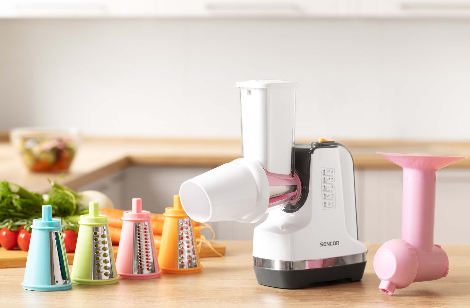 رنده کردن مواد غذایی با دست بسیار کار سخت و طاقت فرسایی است. حتی خیلی وقت ها باعث جراحت میشد اما خوشبختانه سنکور با تولید رنده ی برقی تمام این مشکلات را حل کرده است وهمچنین برای کارایی بیشتر و تنوع در انجام کار از 5 سری رنده استفاده کرده است، که شامل 1.رنده برش دهنده و خلال کن نازک: از این رنده برای درست کردن چیپس و خلال کردن میوه ها برای تزئین غذا استفاده میشود 2.رنده با تیغه موج دار: برای سبزیجات و میوه جهت تزئین و چاشنی غذا
